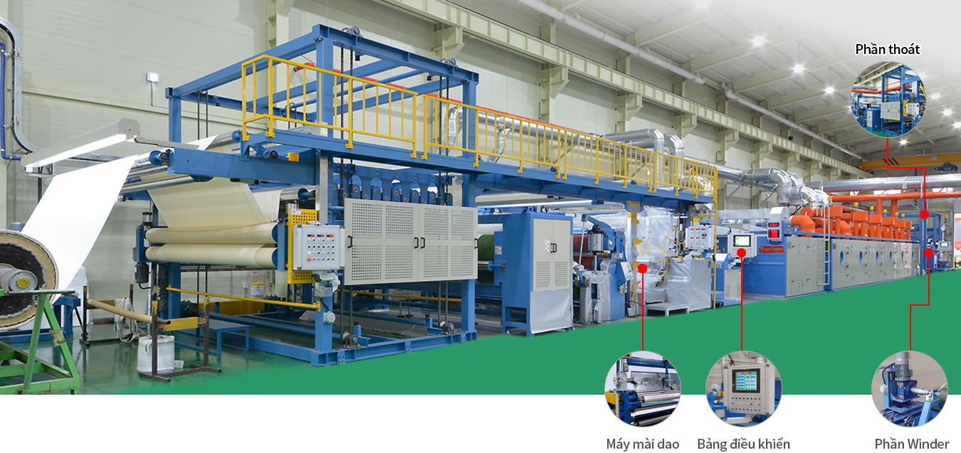 - Máy móc này cho phép lớp phủ đồng nhất thông qua kiểm soát lực căng chính xác. Hơn nữa, có thể kiểm soát lực căng cho từng thiết bị và được thiết kế để ngăn chặn sự kéo căng của vải phủ về mặt cấu trúc.