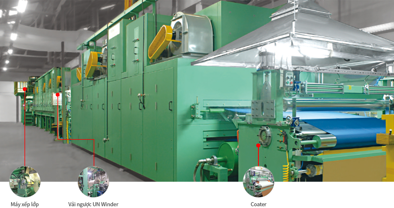 - Máy phủ & cán cho da tổng hợp và các sản phẩm ngoài trời chức năng cao